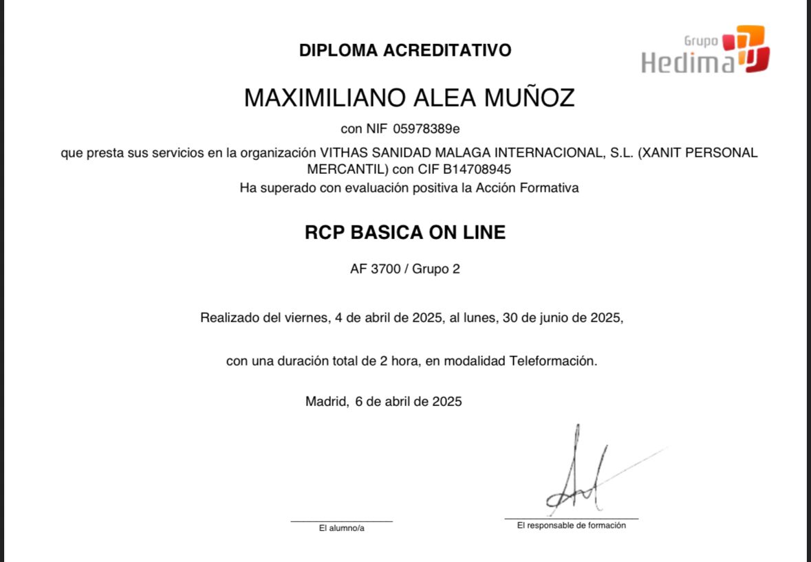 Es actualmente Jefe de servicio de Vithas Xanit Internacional Benalmádena 2022-actualidad y de HM Málaga 2025-actualidad.